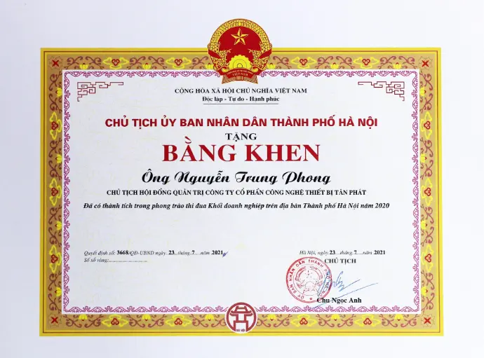 CÔNG TY CỔ PHẦN CÔNG NGHỆ THIẾT BỊ TÂN PHÁT (TÂN PHÁT ETEK) được thành lập vào ngày 27/9/1999 tại Hà Nội. Người sáng lập là Ông Nguyễn Trung Phong - Chủ tịch HĐQT và Ông Nguyễn Minh Tân - Tổng Giám đốc.